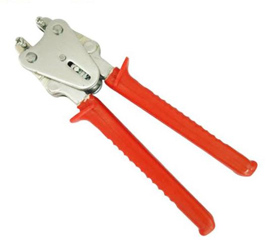 Kìm kẹp chì cộng lực được sản xuất từ chất liệu thép đúc có lớp mạ bên ngoài bảo vệ. Tay kìm bấm dài giúp hỗ trợ thêm lực cho người bấm, ngoài ra còn bọc thêm lớp cao su chống trơn tuột khi thao tác.